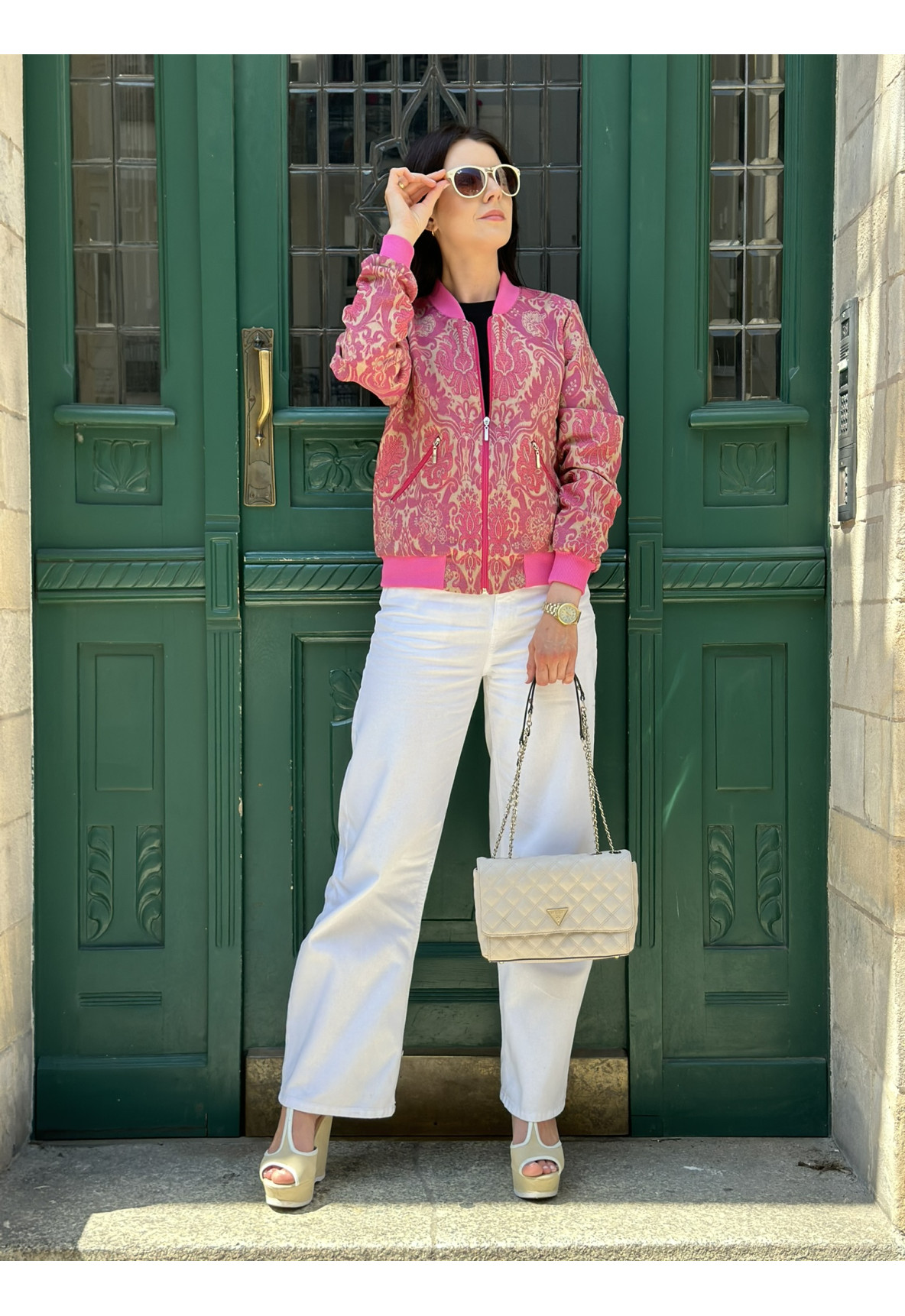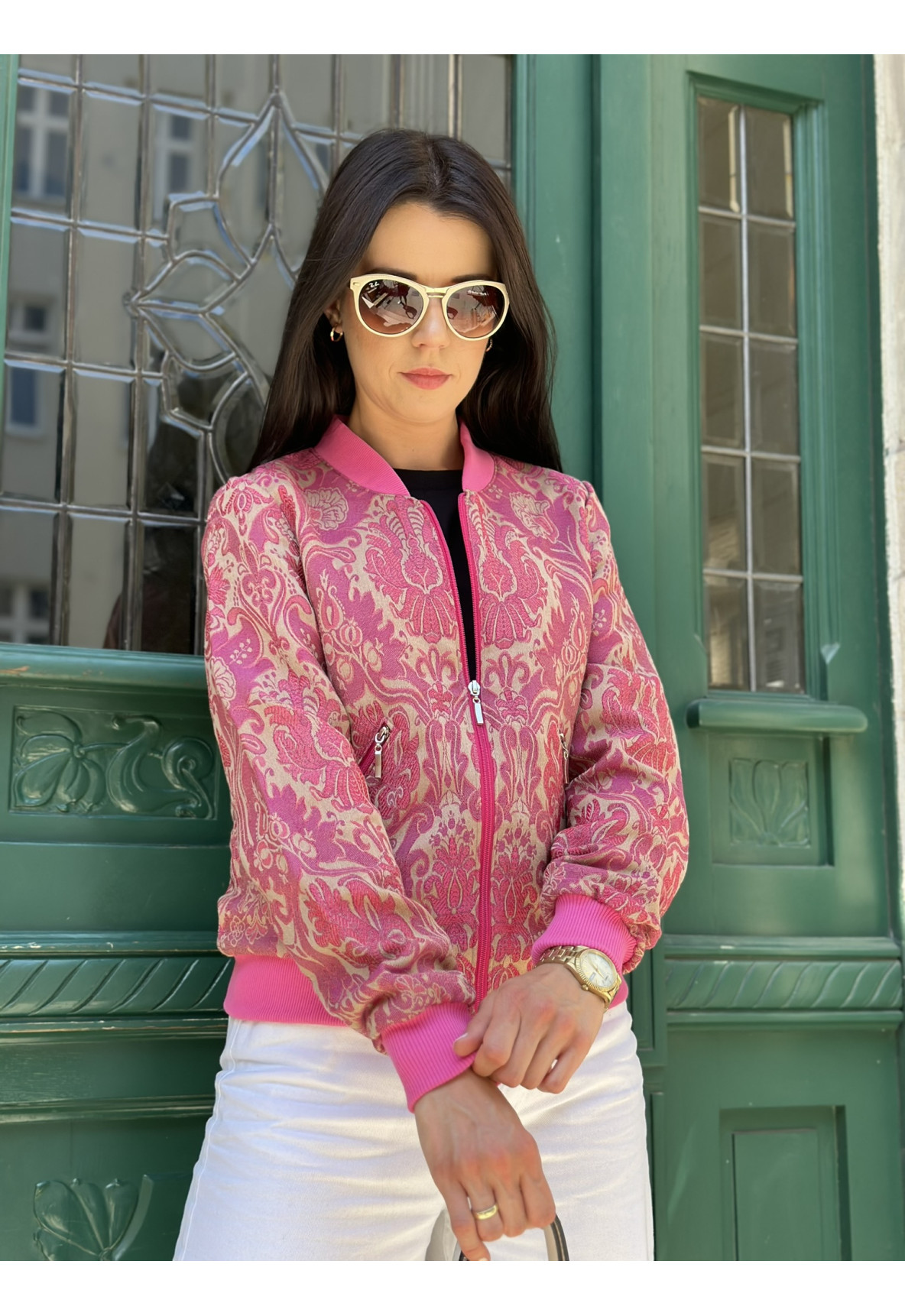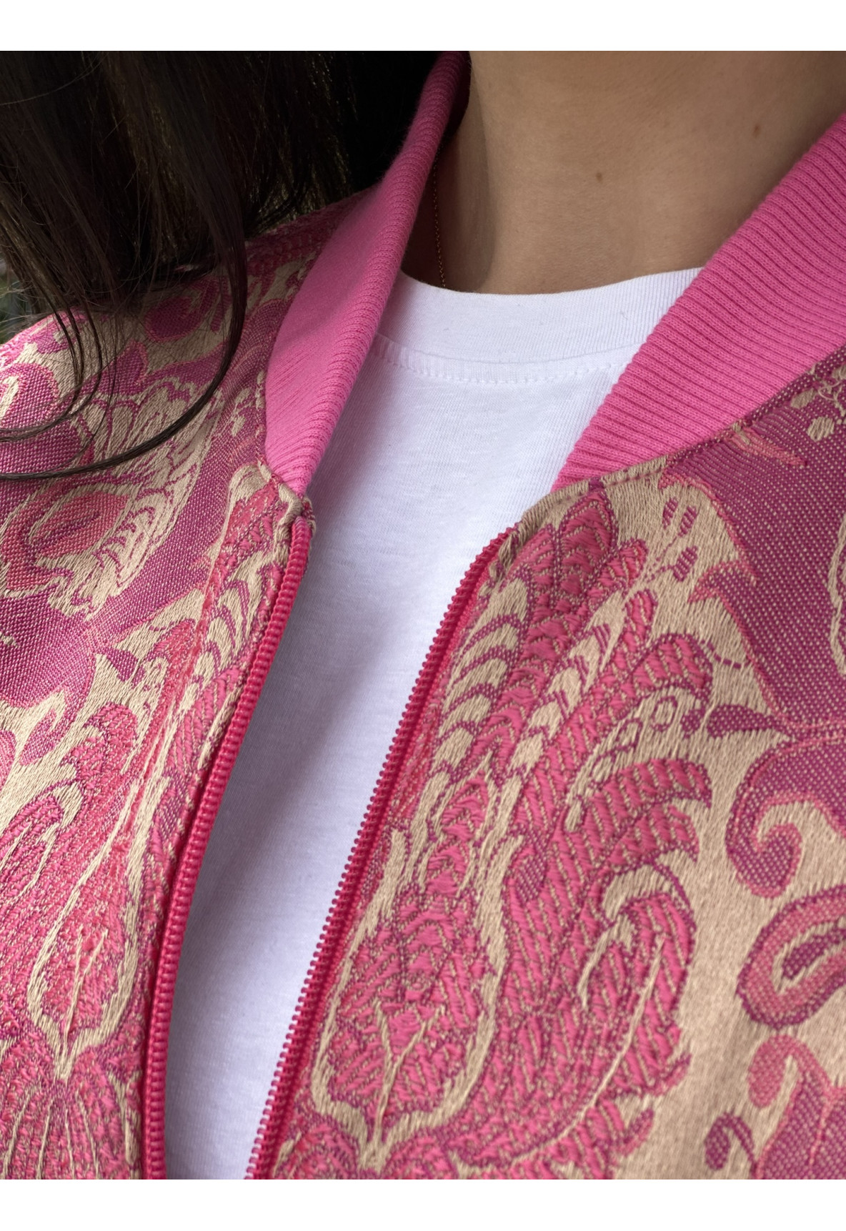 MON LIGHT to siostra kurtki MON DARK. Kurtka typu bomber jest uszyta z najwyższej jakości żakardu włoskiego.