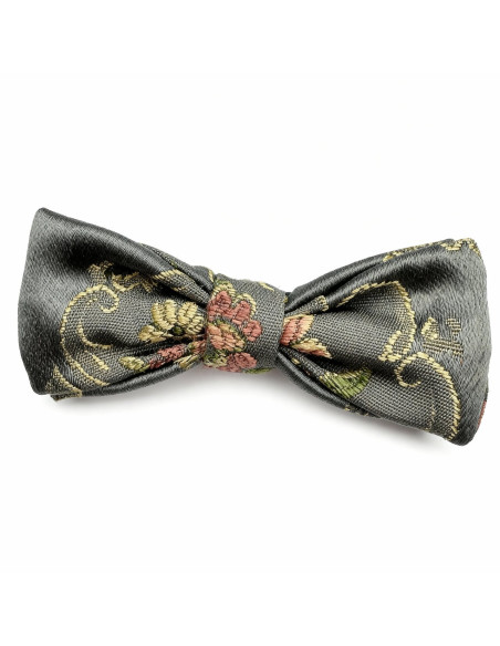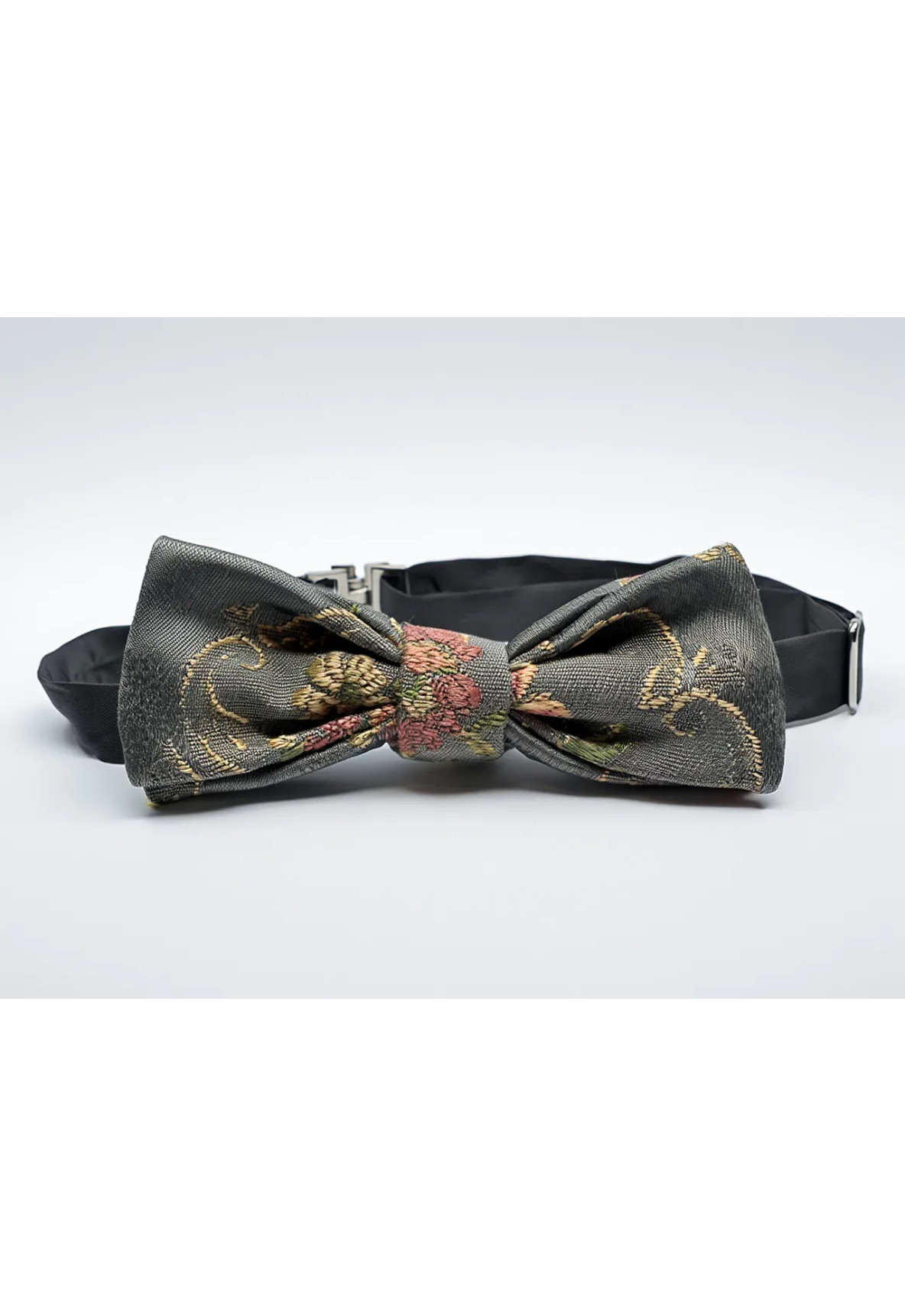 Muszka SILVER FLOWERS BOW TIE to elegancki i uniwersalny dodatek stworzony zarówno dla kobiet, jak i mężczyzn. Srebrna żakardowa tkanina subtelnie połyskuje, a kwiaty w odcieniach beżu i brzoskwini nadają jej wyjątkowego uroku. Muszka idealnie sprawdzi się na wszelkiego rodzaju uroczystościach - ślubach, weselach, imprezach okolicznościowych czy eleganckich przyjęciach. Doskonale komponuje się z klasyczną białą koszulą, a w zestawie z kurtką Silver Flowers tworzy spójną, stylową całość. Dla odważniejszych świetnie urozmaici również nowoczesne stylizacje z obuwiem sportowym, na przykład białymi adidasami.